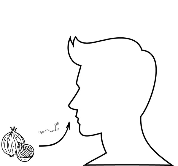 Al cortar una cebolla, sus células se rompen y liberan una enzima específica. Al interactuar esta enzima con los compuestos de azufre de la cebolla, crea un gas que irrita los ojos. Atraído por los líquidos, este gas se disuelve en las lágrimas, formando un compuesto ligeramente ácido que irrita los ojos.