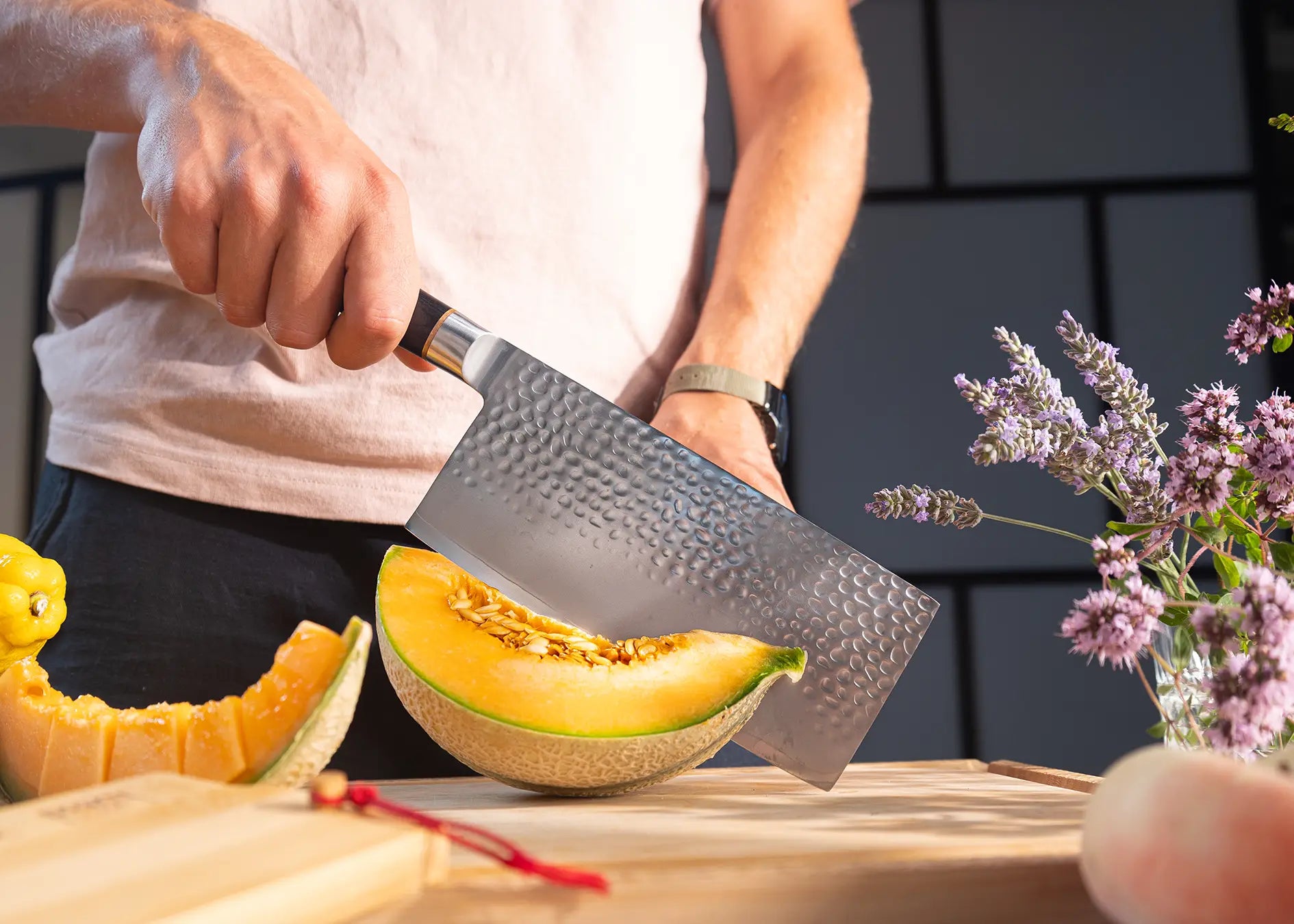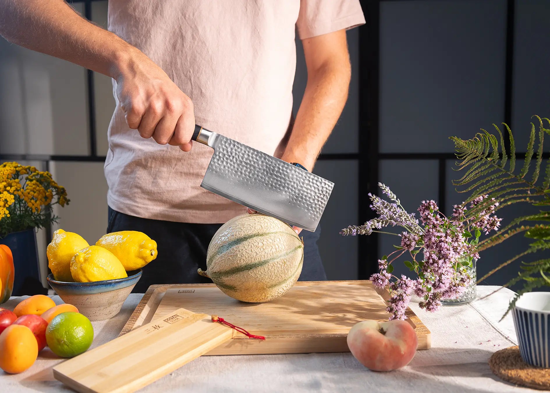 La distribución perfecta del peso y el mango de madera de pakka pulido a mano han sido diseñados para que puedas cortar sin esfuerzo los alimentos más duros sin comprometer la comodidad.