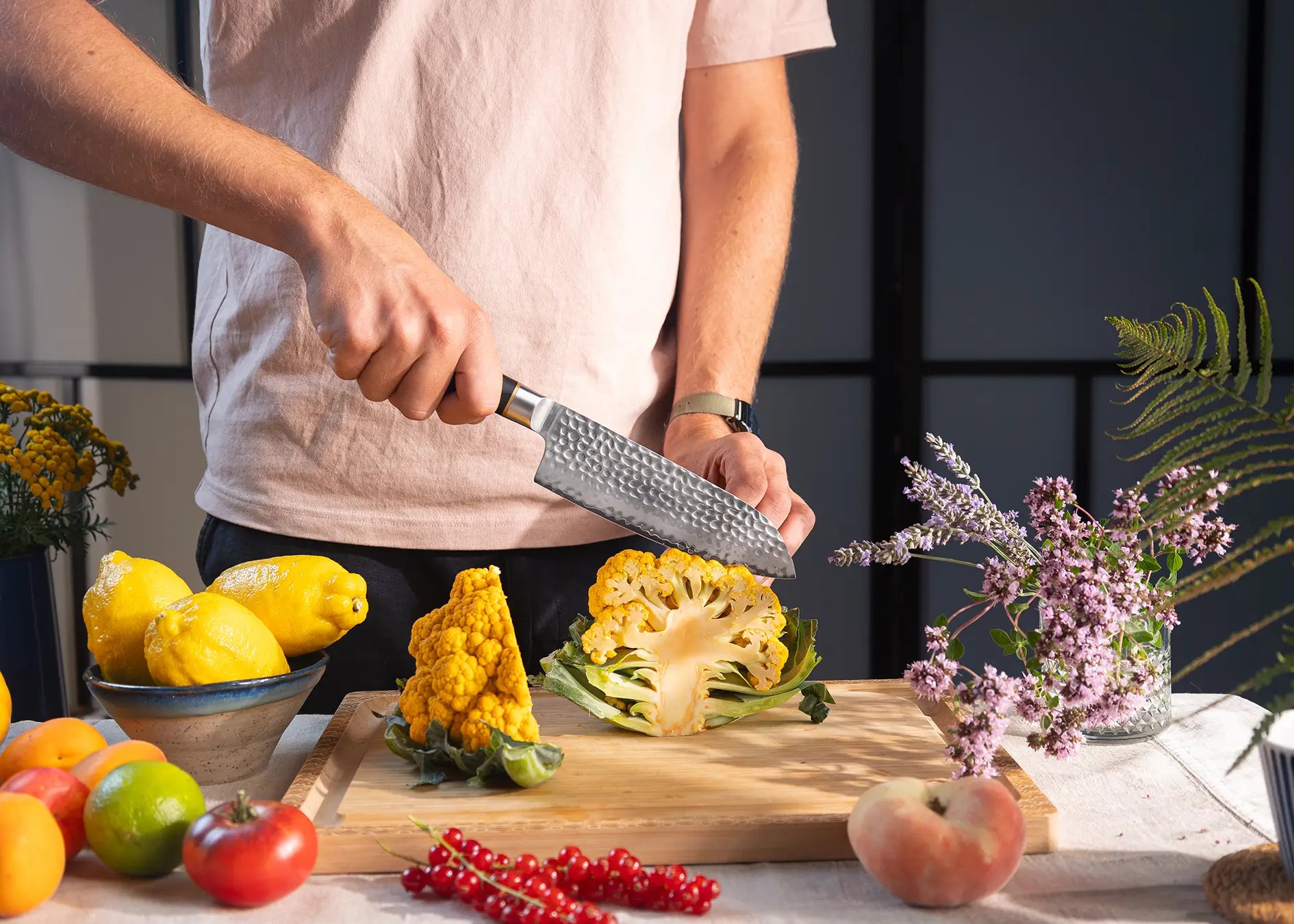 La distribución perfecta del peso y el mango de madera de pakka pulido a mano han sido diseñados para que puedas cortar sin esfuerzo los alimentos más duros sin comprometer la comodidad.