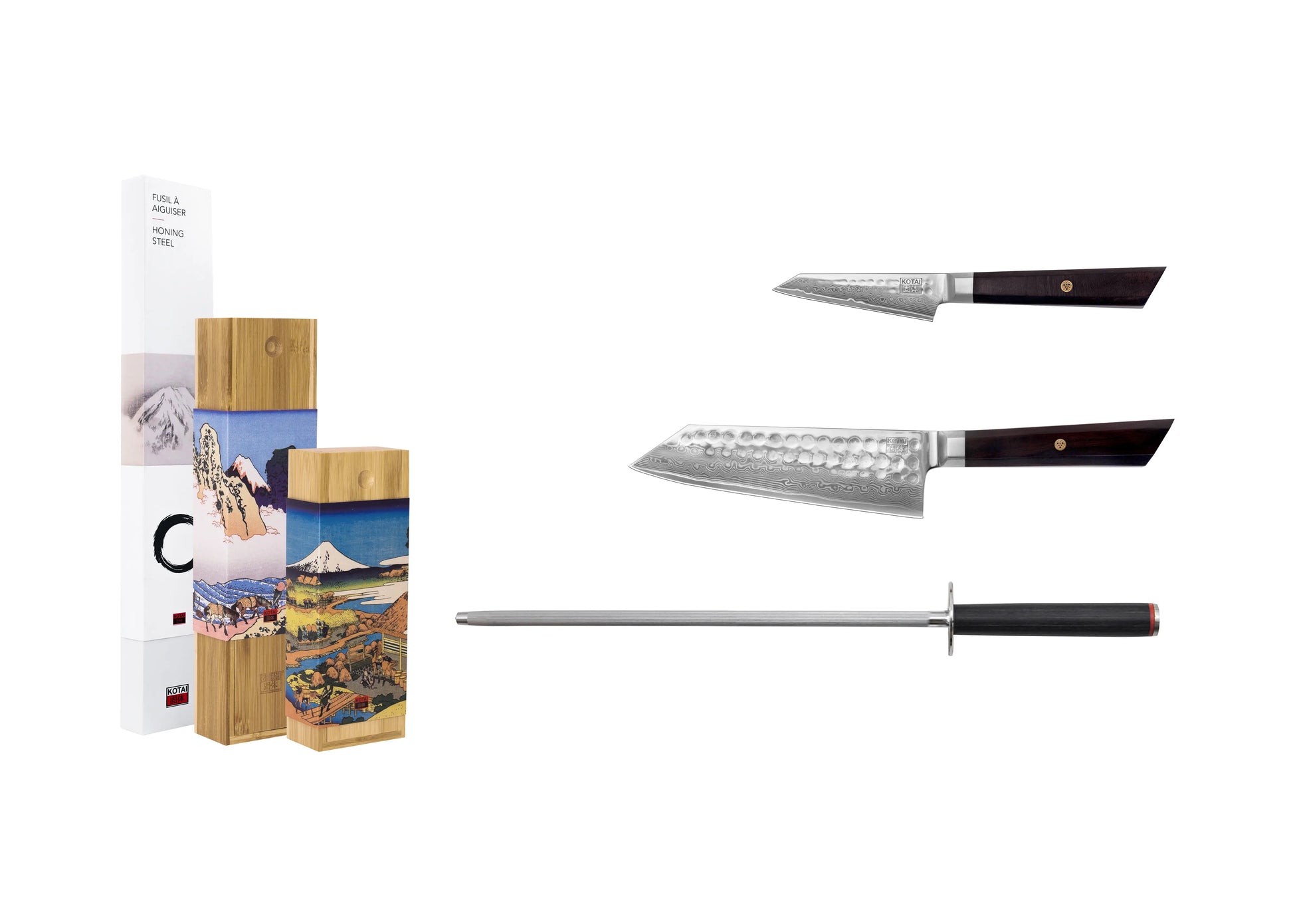 Set de Inicio de Cuchillos de 3 Piezas - Colección Bunka Damascus (Vara de Afilado)