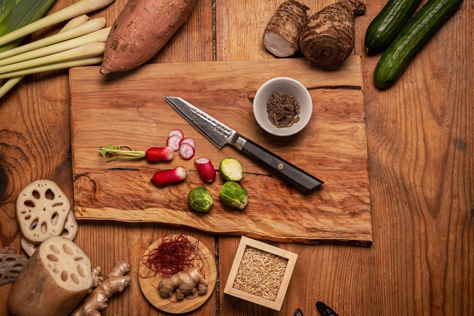 ○ Cuchillo pelador Damascus Bunka - hoja de 90 mm