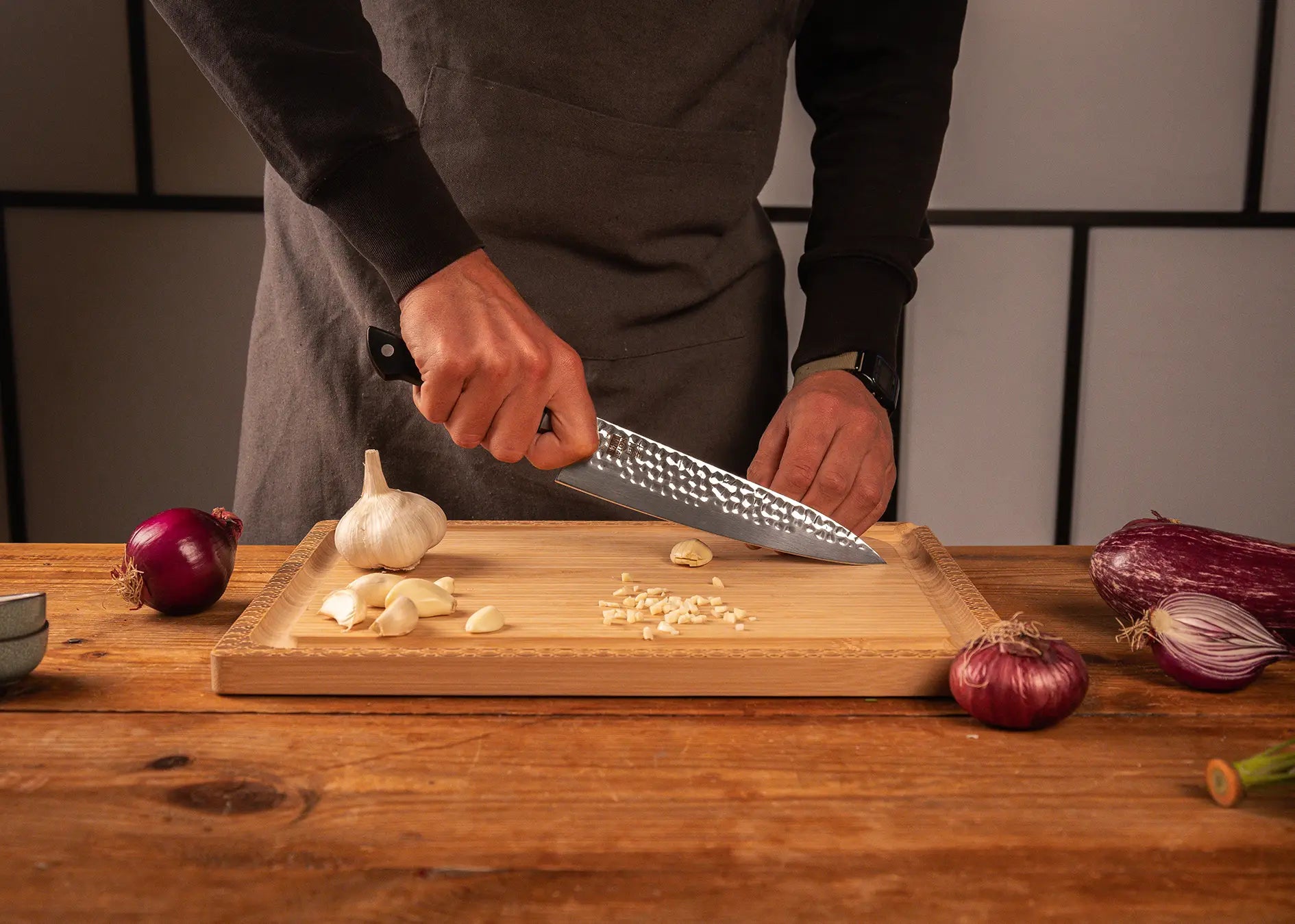L'acier inoxydable japonais au molybdène, dont la concentration en carbone est supérieure à la moyenne, permet à la lame de conserver son tranchant plus longtemps que les couteaux ordinaires. L'ajout de chrome dans l'alliage d'acier rend la lame inoxydable, facile à utiliser et à entretenir.