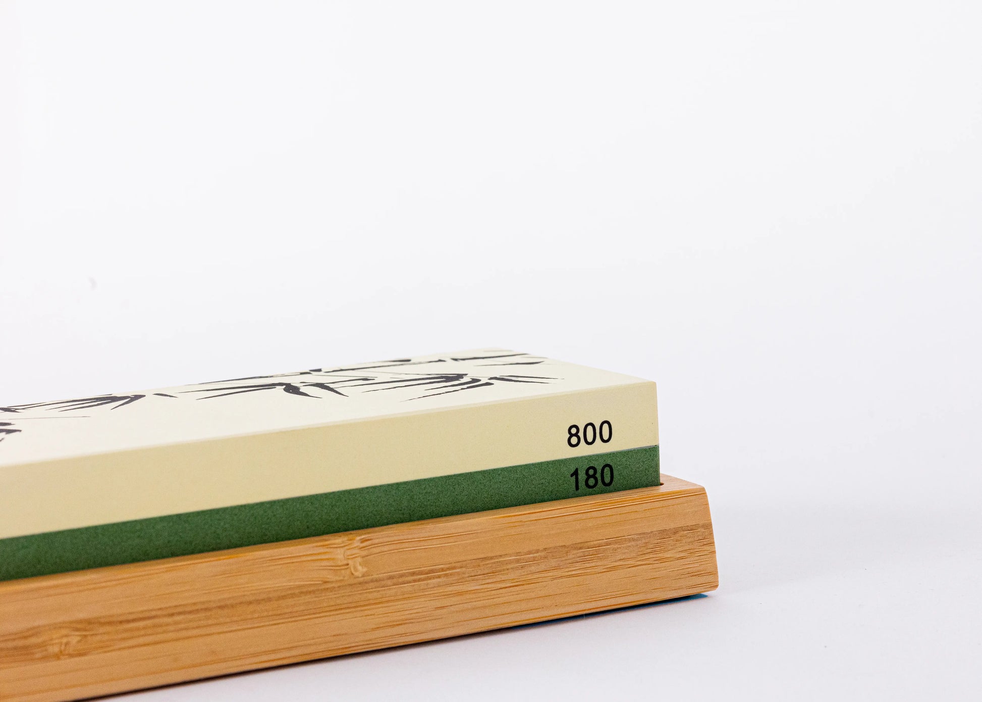 ○ Sharpening set including 180/800 grain whetstone, non-slip bamboo base, 15 degree angle guide and corundum stone flattener