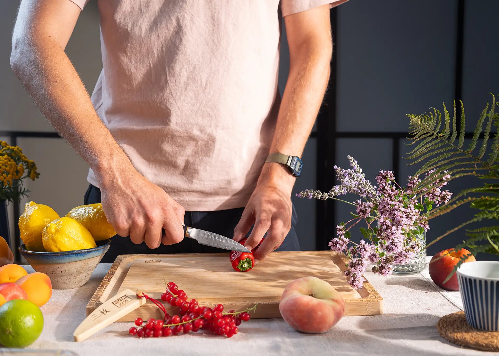 Gyuto, Santoku, cleaver, bread knife, fillet knife, paring knife… The Pakka San-Mai collection offers a wide selection of blades to meet all your culinary needs. It stands out in particular for its handles made of black pakkawood, known for its antibacterial properties, water resistance, and durability.