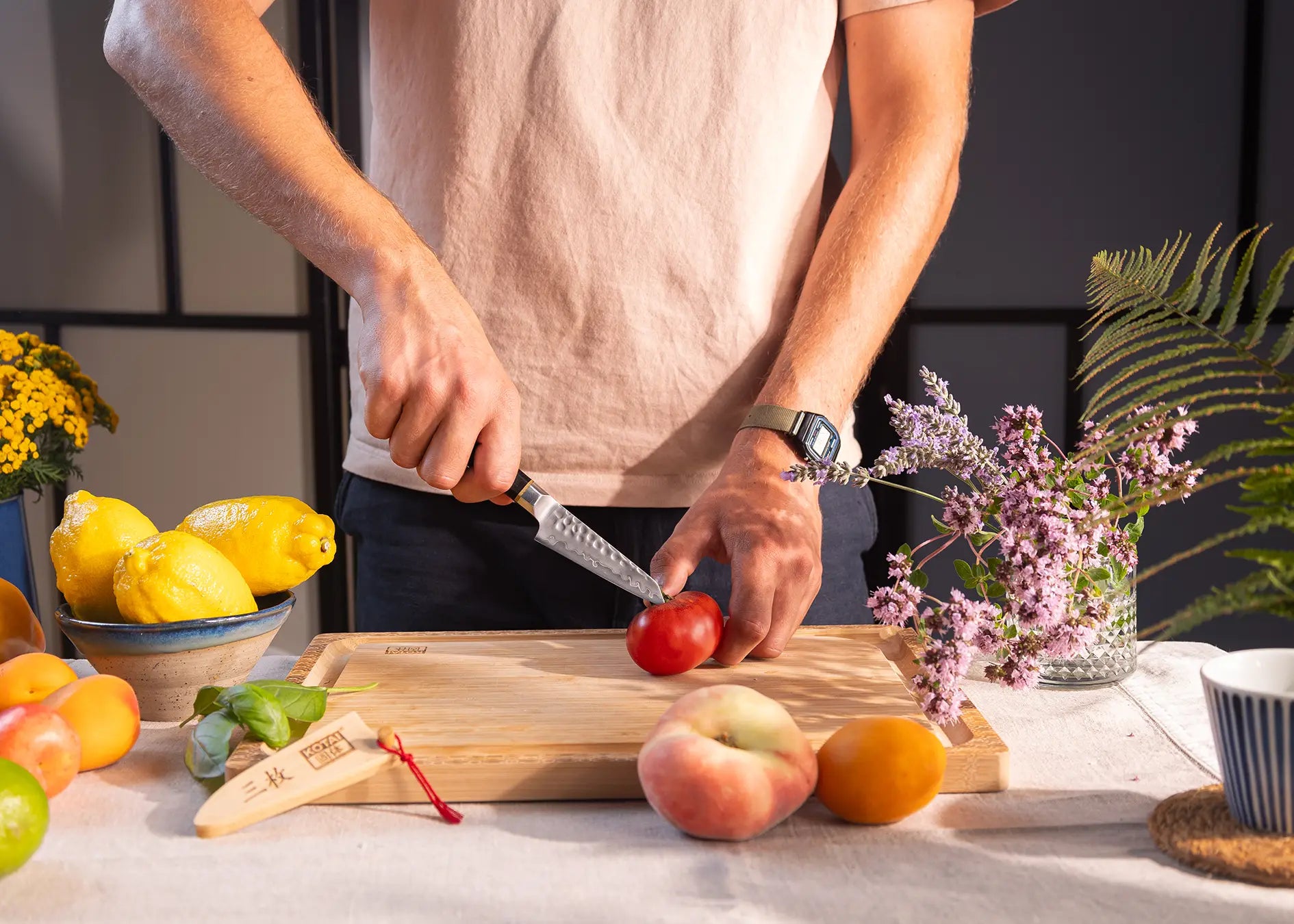 The paring knife is the second most commonly used knife, just after the chef’s knife. It is extremely useful for precision tasks performed off the cutting board and can also be used for peeling ingredients.